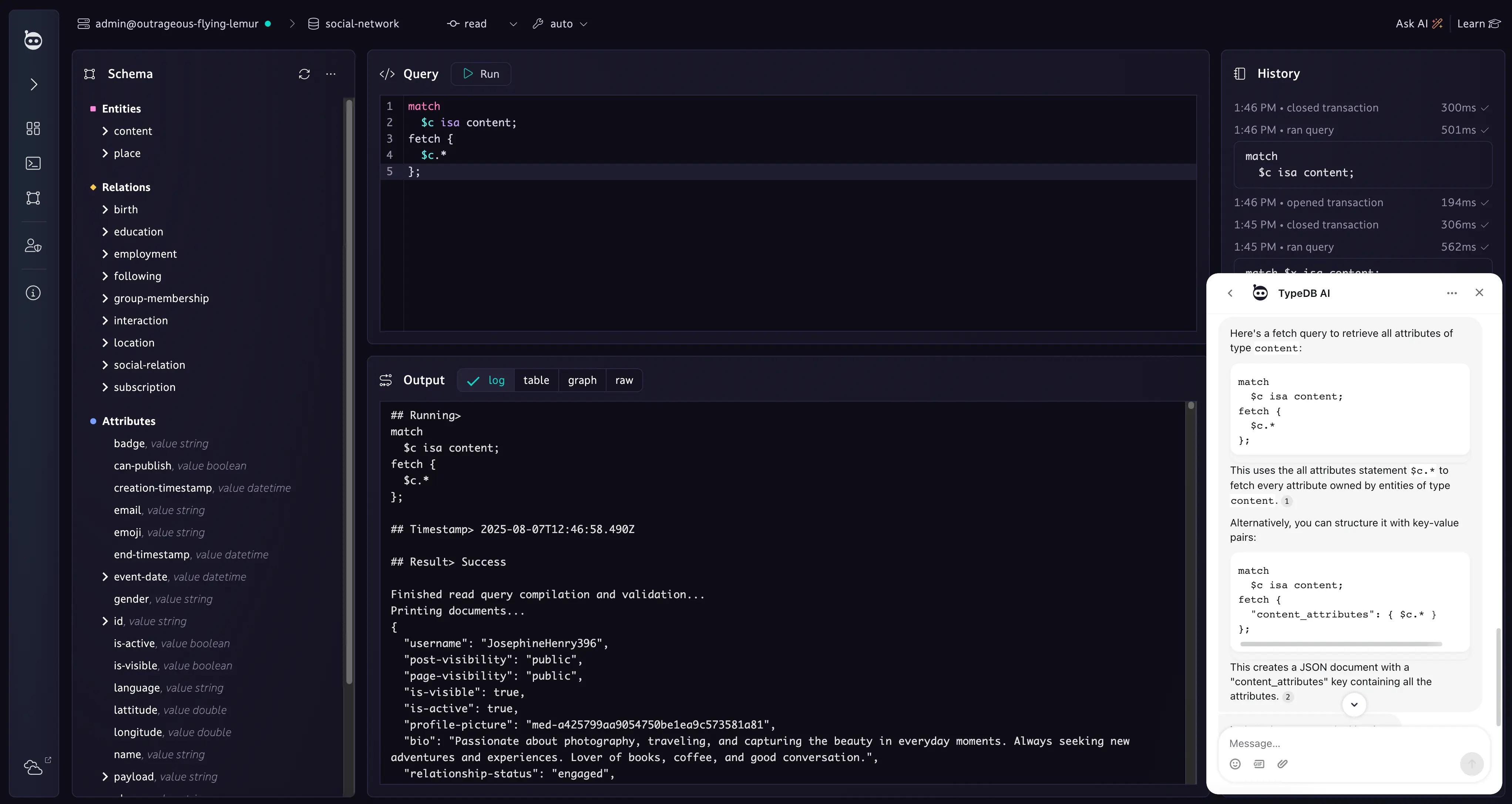 TypeDB delivers a clear, structured data model and a human-readable, beautiful query language, ideal for powering agentic systems, cyber threat intelligence, robotics and much more.